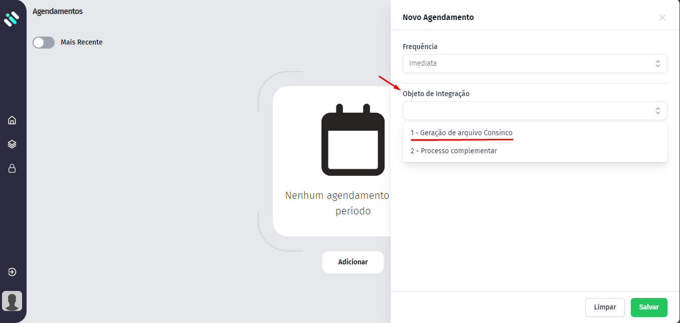 Selecione o objeto de integração e clique em geração de arquivo consinco (para mais informações sobre, acesse a base de conhecimento clicando nesse link);