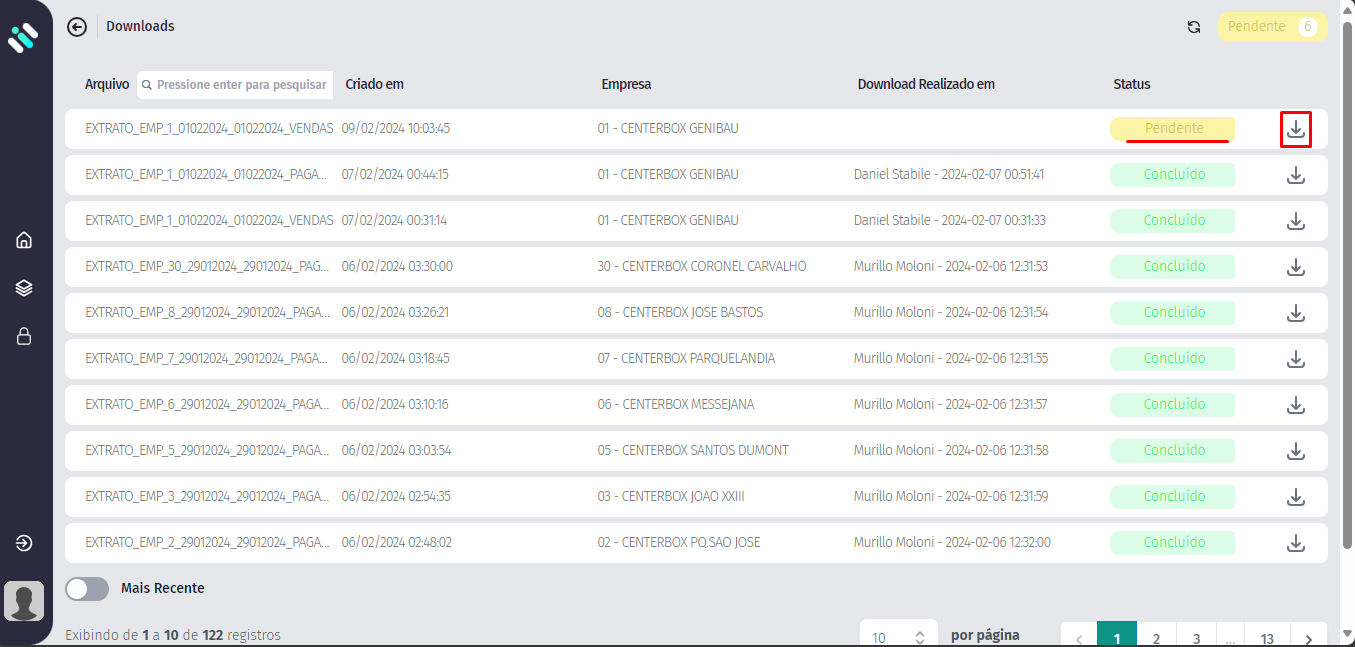 Clique no ícone conforme mostrado abaixo para baixar o arquivo;