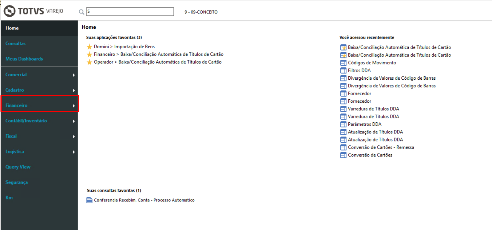 Etapa 1 : Em menu consinco clicar em financeiro;